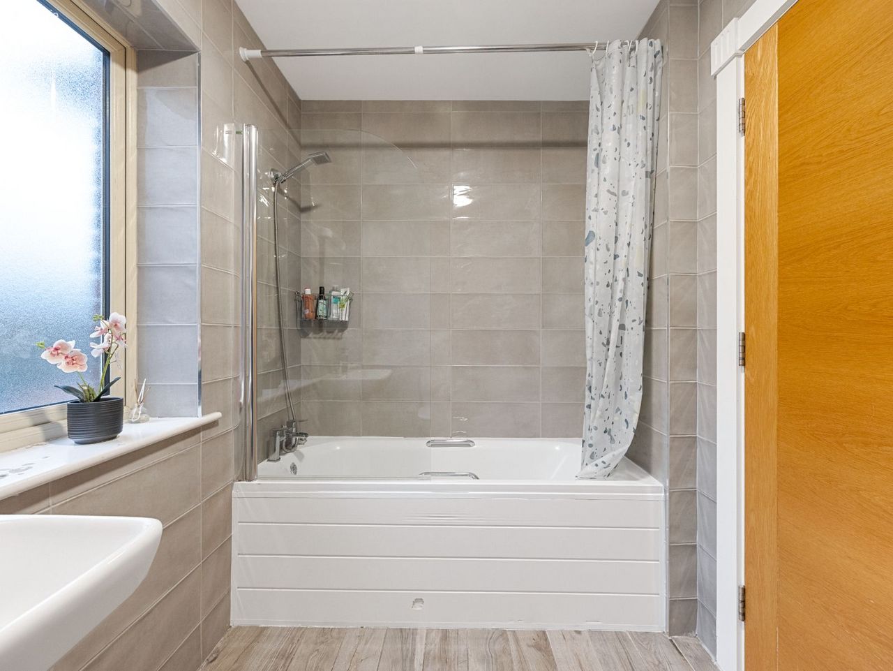 Bathroom: 2.90m x 1.80m DG frosted glass windows to front aspect, ceramic tiled flooring, bath with shower over and splash-screen, pedestal hand basin and W.C.