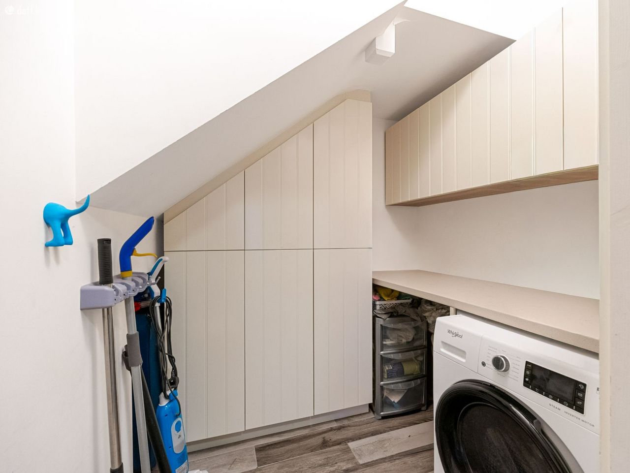 Utility room: 1.80m x 1.70m Superior laminate flooring, space for washing machine, space for dryer and built-in storage.