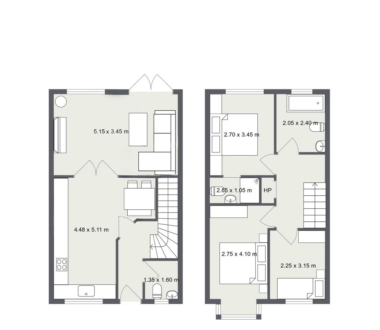 Hallway: 3.40m x 1.00m Wood front door, laminate flooring, stairs to first floor, door to cloakroom/W.C and alarm pad.