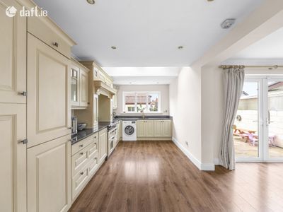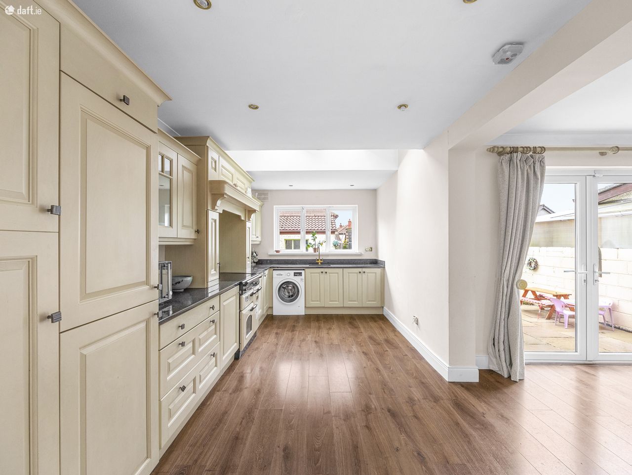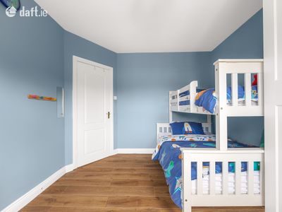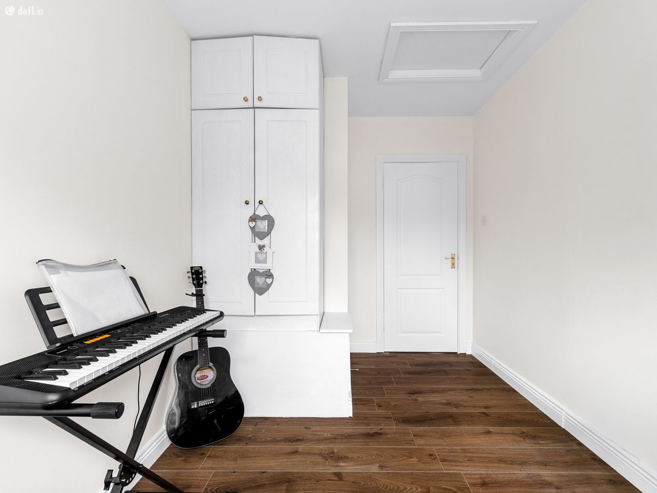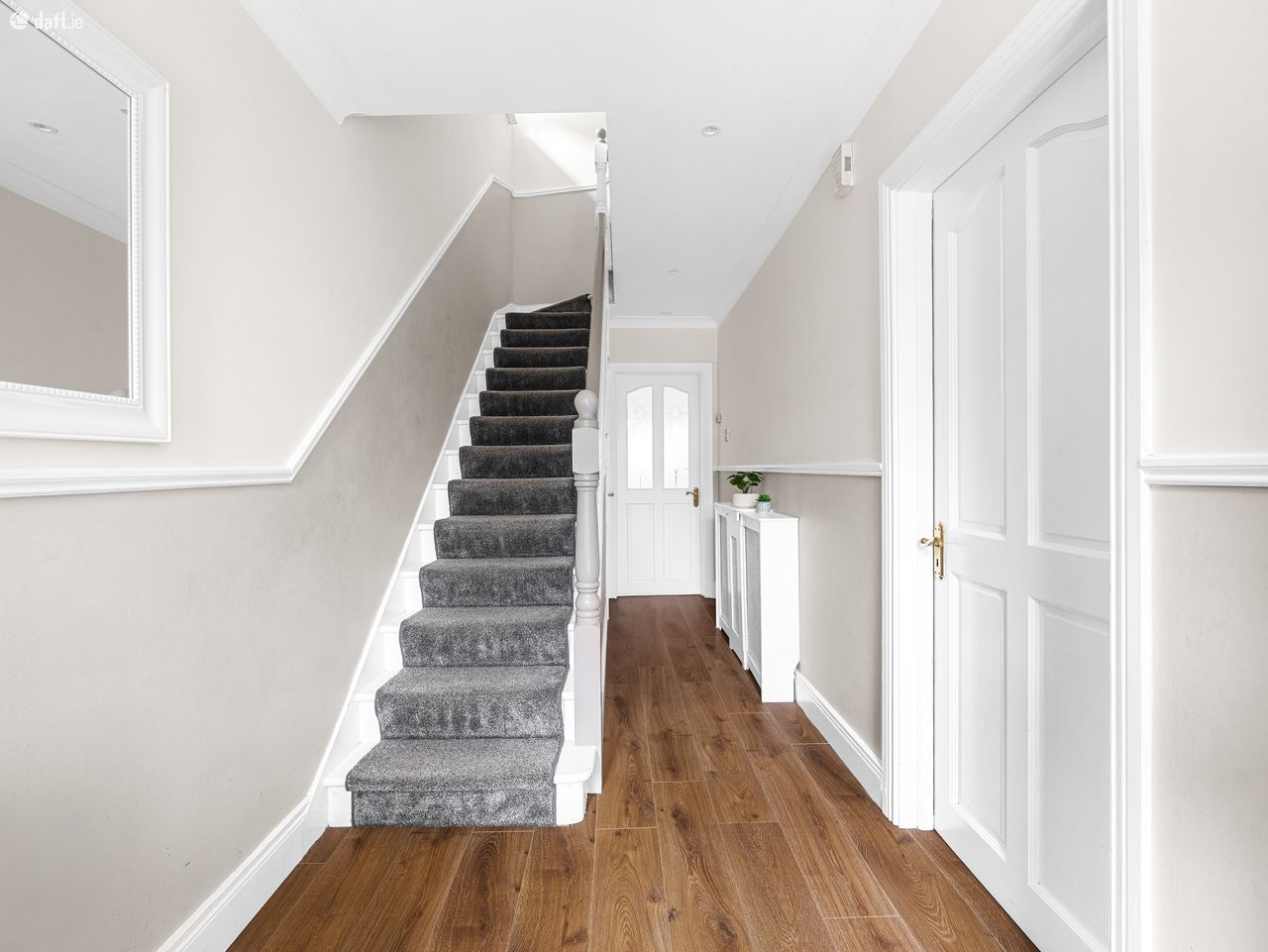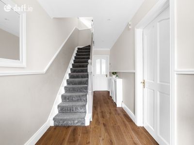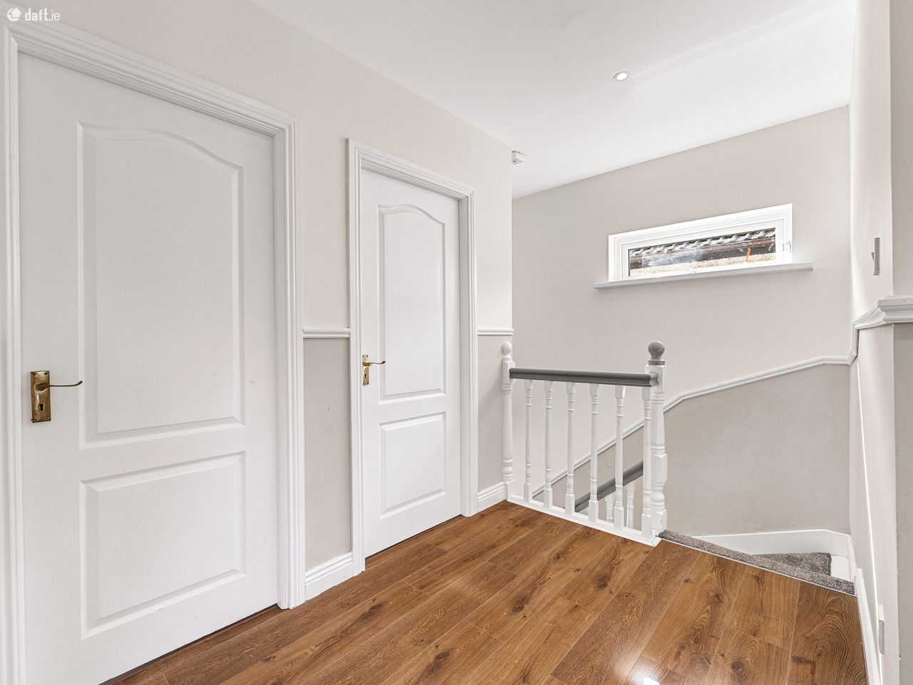 Upstairs you have a spacious landing with a fitted hot-press and four generously sized bedrooms with master ensuite and family bathroom both neatly tiled and fitted with white ceramic sanitary suites. In addition to the ensuite, the master bedroom boasts fitted mirrored sliderobes and recently laid wood floors, which also extend seamlessly throughout the home.