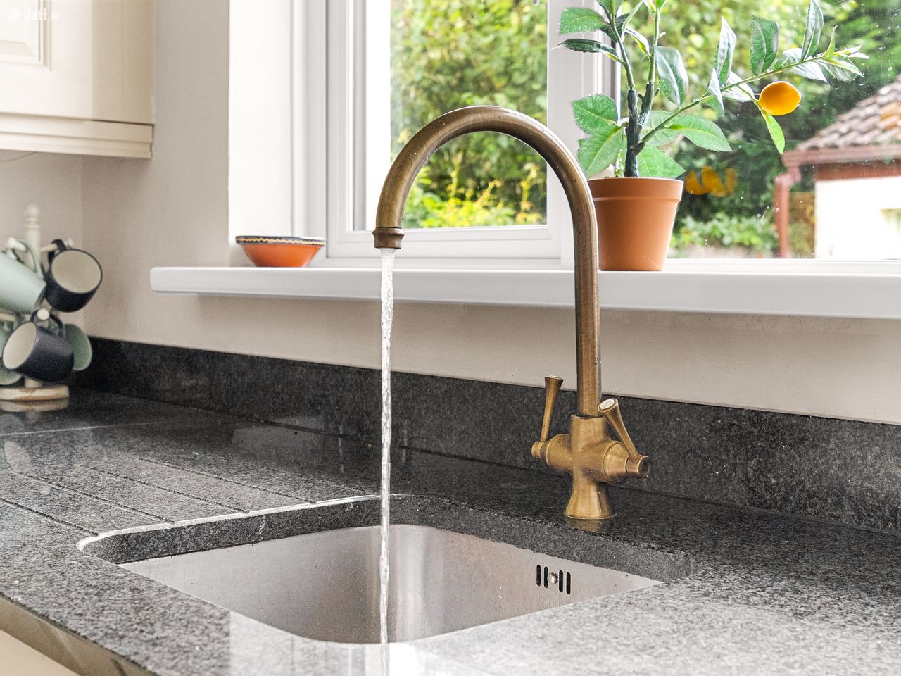Measuring c.117 sq.m, this spacious family home is ideal for a growing family. Beautifully appointed throughout, the house is approached by an exquisite sandstone driveway with granite accents and neatly planted flowerbeds. The light filled accommodation briefly comprises a spacious entrance hall and living room with fitted bookcases and recently installed fuel burning stove, providing a lovely focal point for this cosy room. Double doors lead from here to the wonderful open plan kitchen / dining room. Exuding quality, this space features elegant shaker style painted oak units complemented by solid granite countertops, Rangemaster cooker, and seamlessly integrated appliances. Completing the downstairs accommodation is a tiled WC with pristine white sanitary suite and vanity storage.