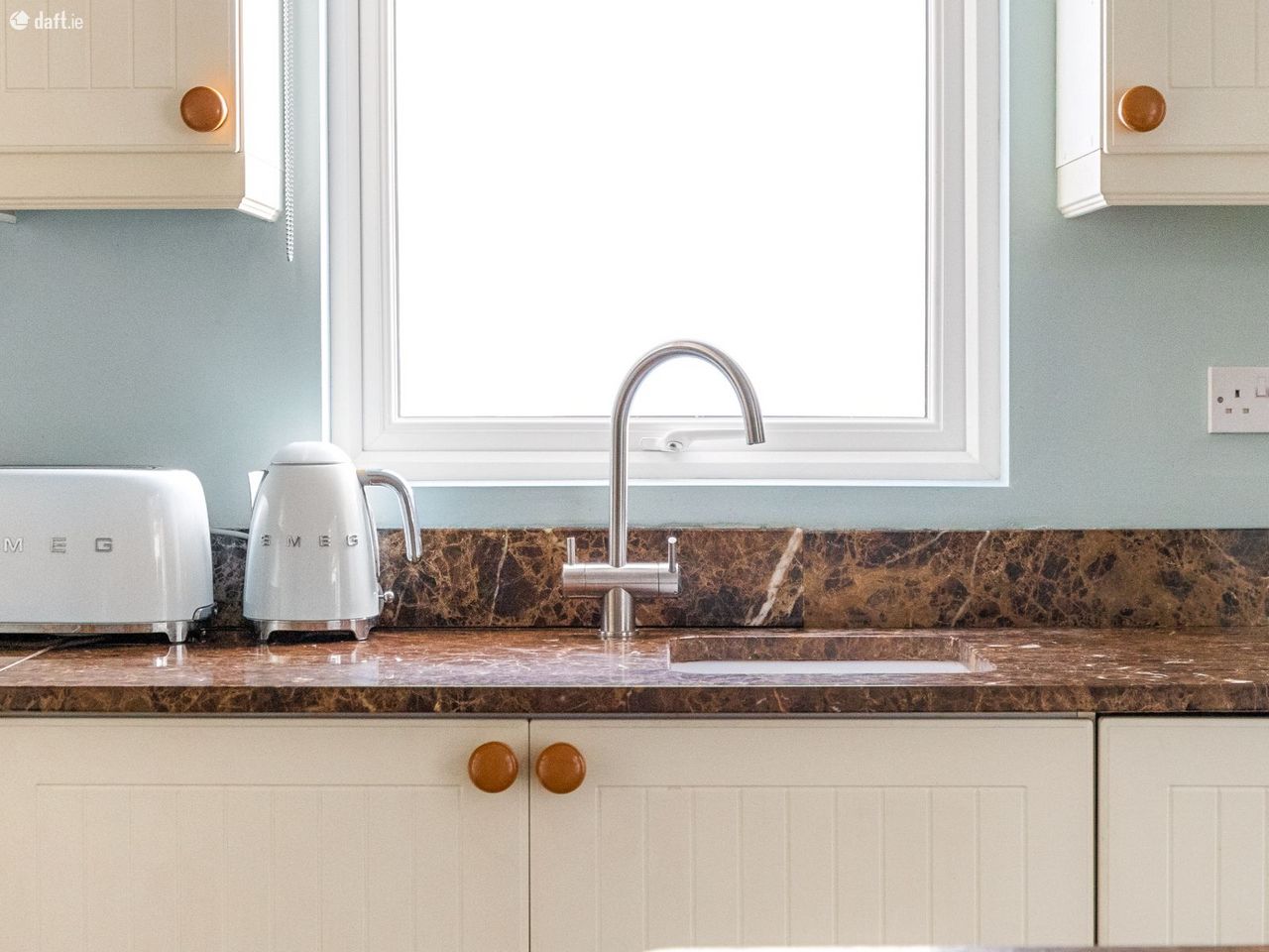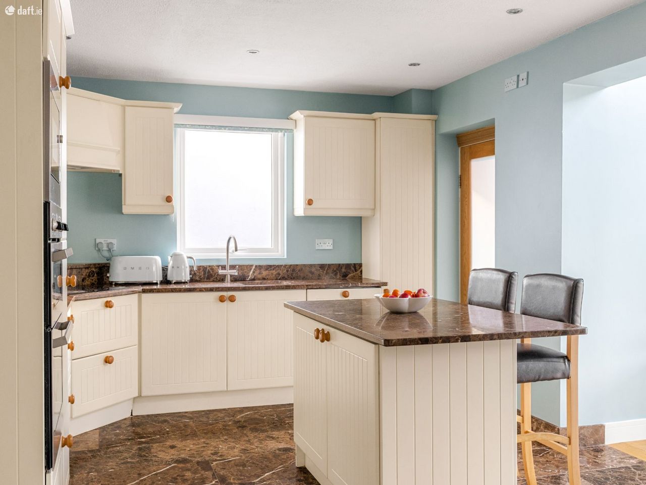 The inviting atmosphere that greets you at the front door continues as you move through to the kitchen. The phrase heart of the home may be overused, but this kitchen truly earns it. With elegant cream units and solid marble worktops and floor, it is an ideal space for cooking and entertaining, with a generous dining area and a stylish kitchen island. The space is further complemented by a practical utility room and a bright, airy living room overlooking the garden, creating a seamless open plan flow.