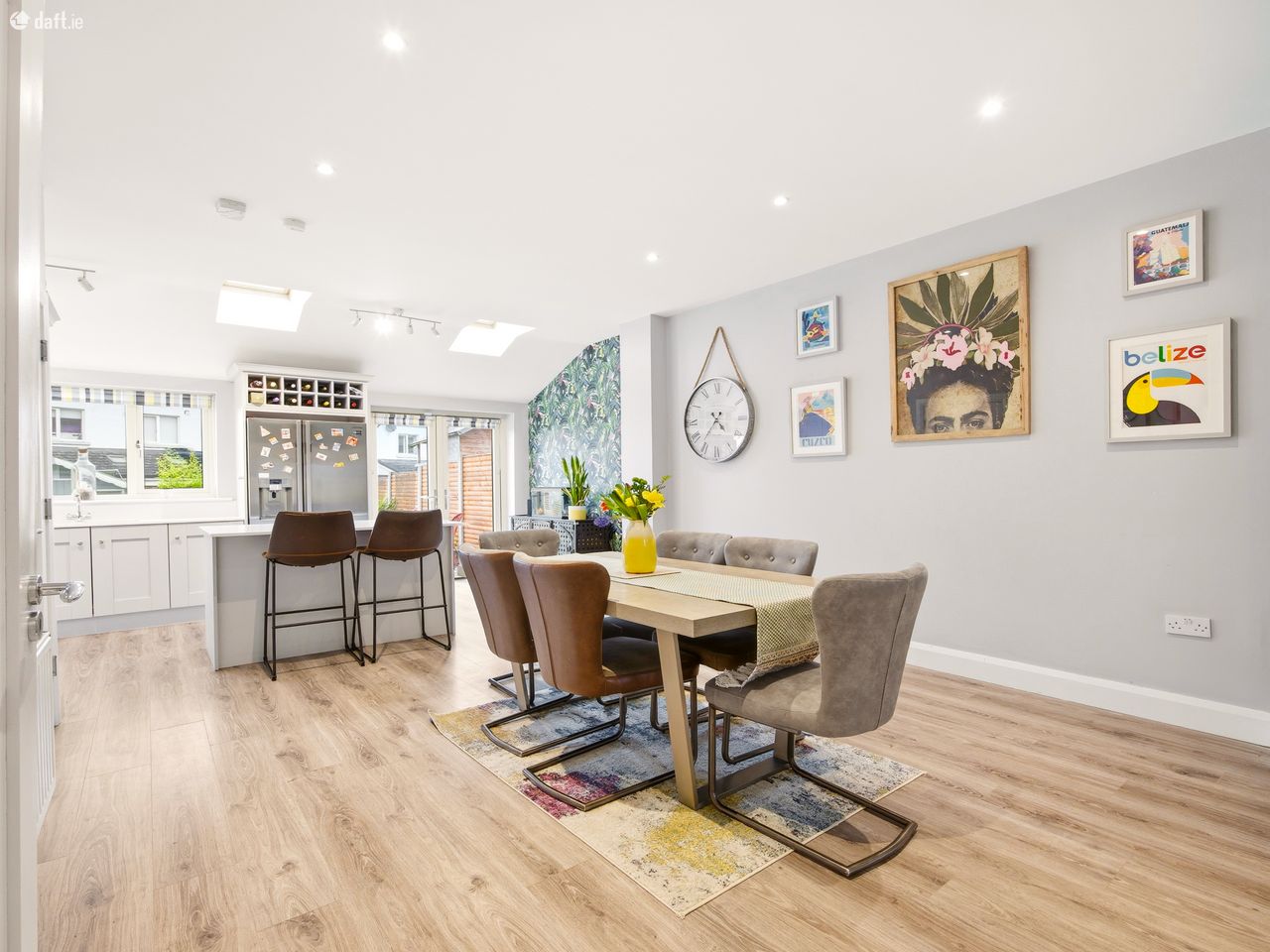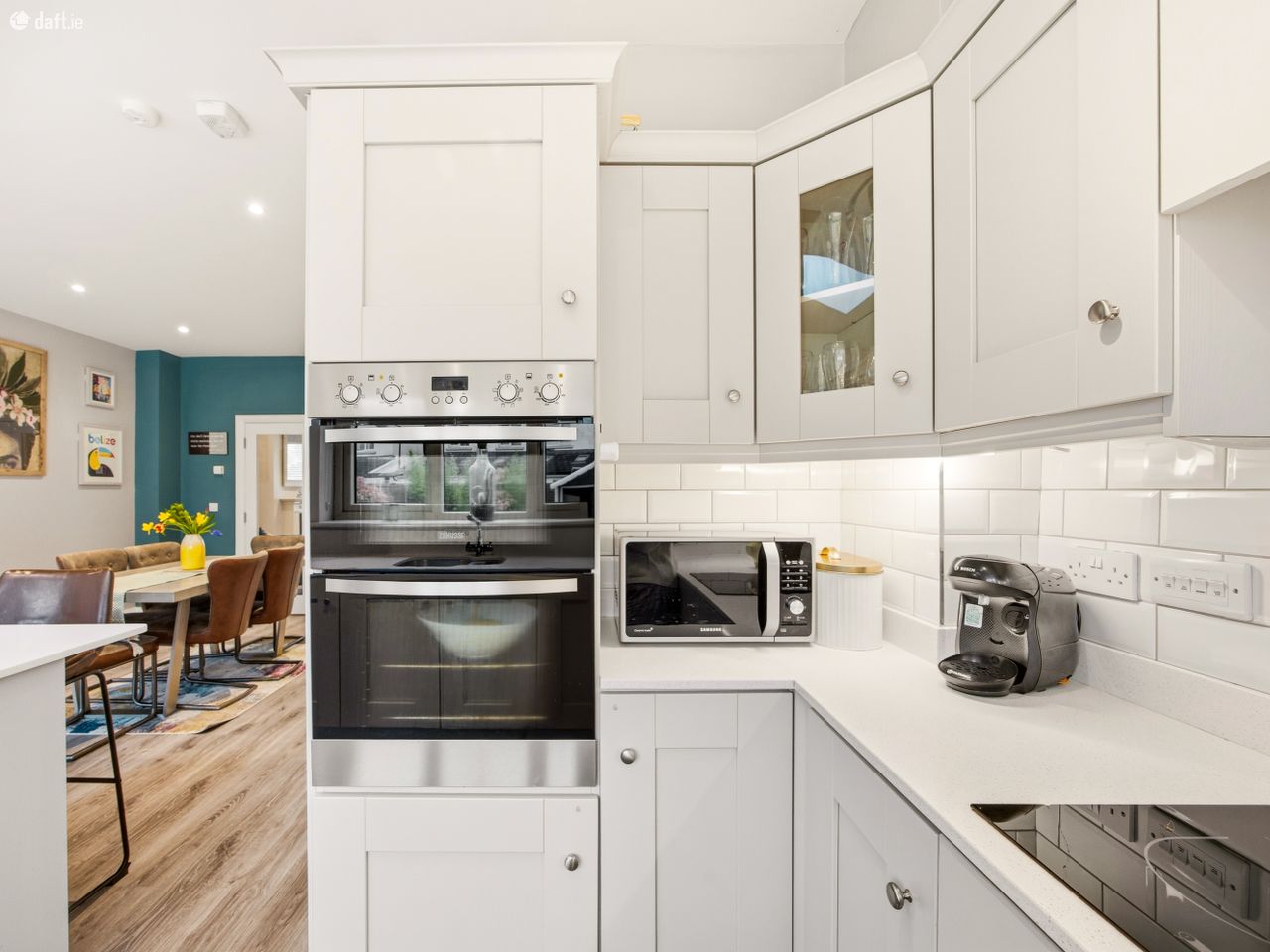 Spanning 142 sqm approx. set over three floors of beautifully styled accommodation, the property boasts four generous bedrooms (two with ensuite), and a sizeable rear garden. Stepping inside, you are greeted by a generously proportioned hallway with wood flooring and staircase fitted with clever soft-close understairs storage. To the right of the hall is a generous sitting room, featuring a large window that floods the space with natural light and at its heart, a fuel burning stove bringing a cosy warmth to the room.