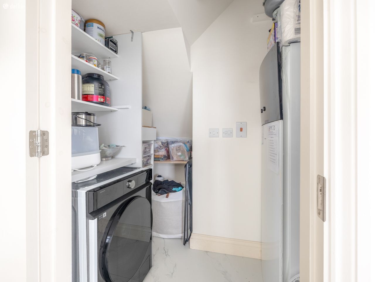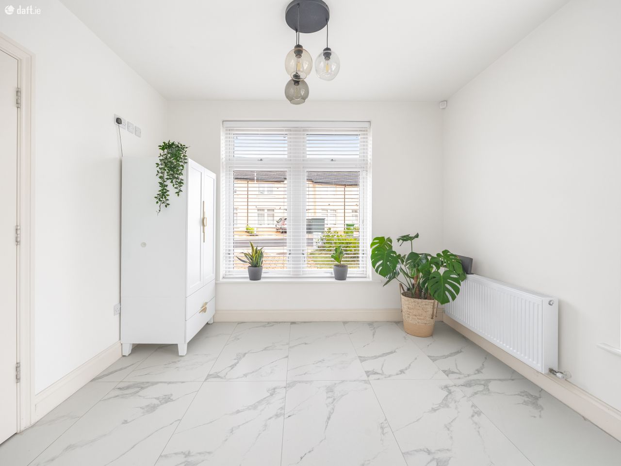 On entering the home, you are welcomed by a bright hallway with elegant wooden flooring. To the right, the hallway leads into a stylish sitting room, complete with wooden floors and large picture windows that flood the space with natural light. To the left, there is a fully fitted modern kitchen with breakfast bar, premium tiled flooring, and a spacious dining area overlooking the rear garden, creating an ideal space for family living and entertaining. Just off the kitchen, a separate utility room provides excellent additional storage and functionality, adding both convenience and practicality to the home.
