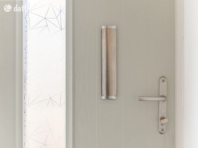 Roller blinds on the kitchen garden gate from Baldoyle Blinds with 2 year warranty (started from Nov 2024)