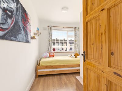 Moving upstairs, a generous main bedroom comes complete with built-in wardrobes and overlooks the front garden. The light filled second bedroom also boasts ample built in wardrobes and bedroom 3 is a spacious single bedroom to the front. The bathroom is contemporary in style with tasteful floor to ceiling tiling and pristine white sanitary suite including waterfall shower.