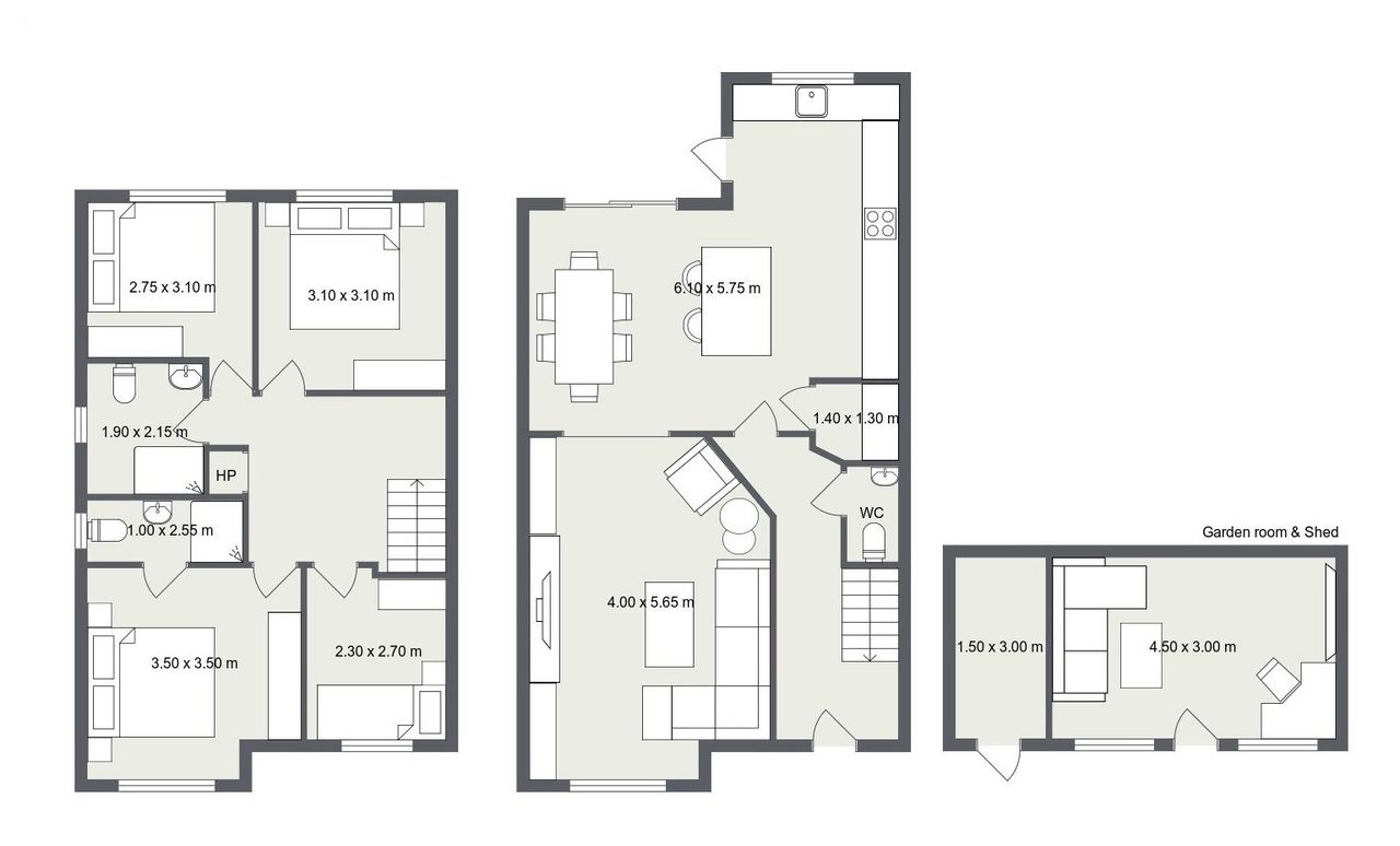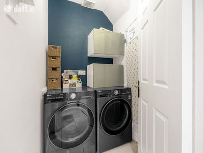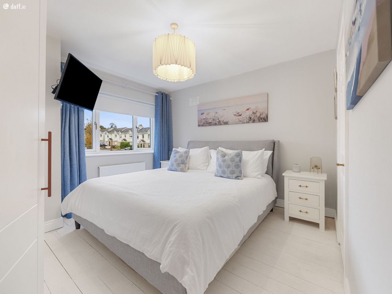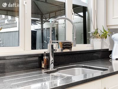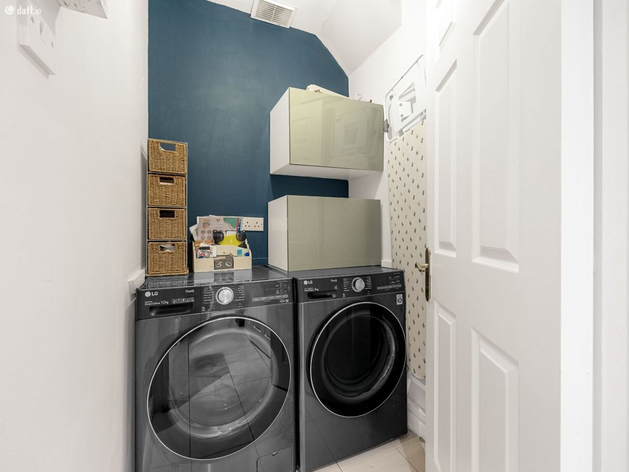 Measuring 116 sq.m approx. with spacious rear garden and additional Seomra home office (approx. 18 sq.m), number 35 is presented in pristine condition and situated in a prime position overlooking the green in this ever-popular development. Immaculately styled and filled with natural light, the accommodation includes a fantastic sitting room with feature wood burning effect fireplace flanked by seamlessly fitted shelving and solid herringbone laminate wood floors. From here, you will find a light filled kitchen/dining areas showcasing contemporary panelled kitchen cabinets in an elegant slate grey with pewter handles and durable granite countertops. Adding to the practicality of the space, is a well-appointed utility room along with a downstairs WC, beautifully tiled and styled in keeping with the rest of this beautiful home.