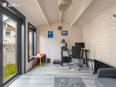 Garden room/Office: DG French doors to front aspect, DG windows to front aspect, laminate flooring, pitched roof and power, light and internet.