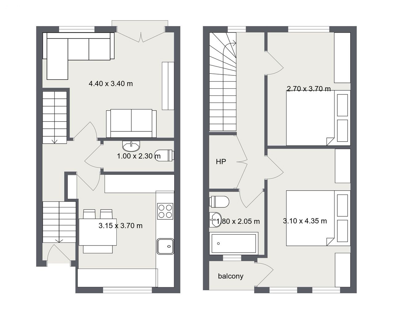 Upstairs, you will find two spacious bedrooms, each benefiting from great natural light and free-standing wardrobe space. The master bedroom enjoys direct access to its own private balcony, creating a lovely spot to unwind.