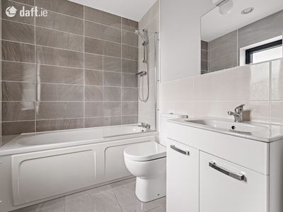 Moving upstairs there are 3 bedrooms that are bright and airy, all fitted with generous built-in wardrobes and decorated in neutral tones. The main bedroom has an en-suite which is neatly tiled with the highest quality fixtures and fittings. The family bathroom is neatly tiled, with white sanitary suite and ample vanity storage. The property benefits from its own off street parking and the development overall boasts ample visitor parking.