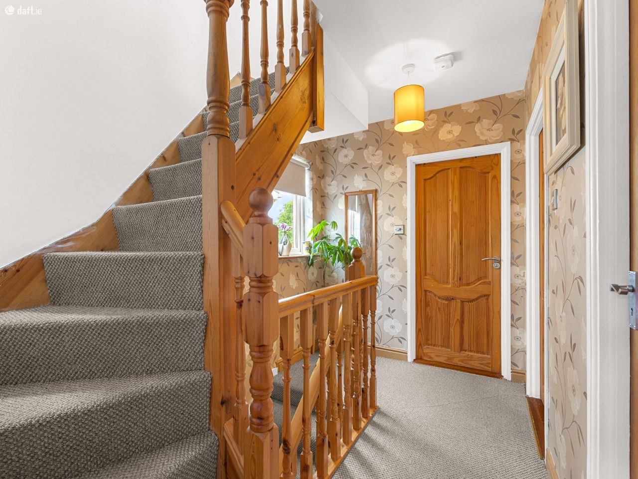 Hallway: 4.80m x 1.80m Composite front door with DG leaded light glass panels, polished Porcelain flooring, under-stairs storage, door to shower room/W.C., stairs to first floor and alarm pad.
