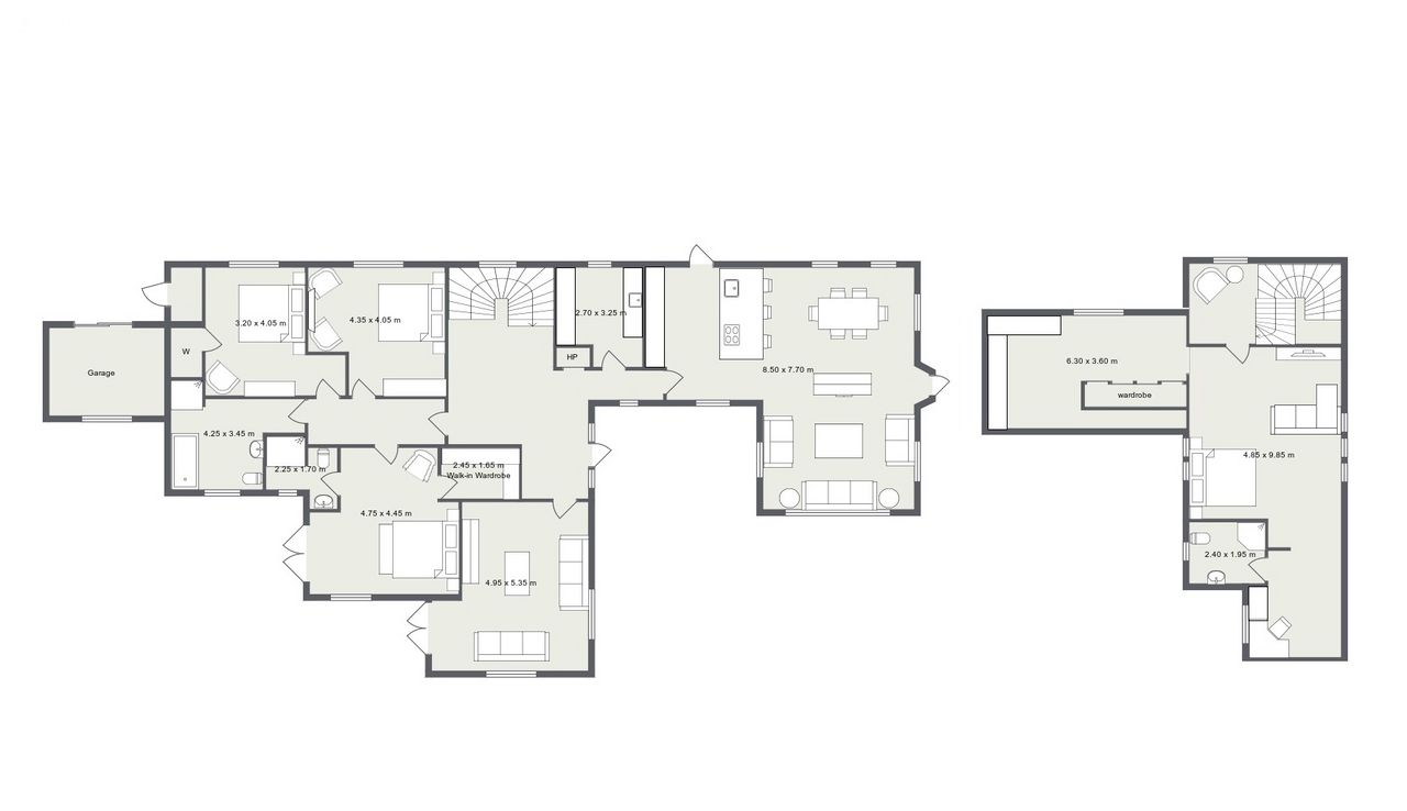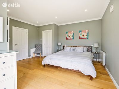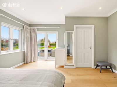 Moving across the hall along the solid oak floors you will find the bedroom accommodation. The principal bedroom suite comprises a beautifully appointed double bedroom with patio doors opening directly onto the garden. It is further enhanced by a superbly finished, fully tiled en suite complete with a walk in shower. Completing the space, is a walk in wardrobe with full height hanging and bespoke storage, creating an exquisite dressing space. Moving on to the main bathroom, you are greeted by another generously proportioned space, finished in Travertine tiling and fitted with pristine white sanitary ware. The room features both a deep-set bath and a separate shower. The remaining two downstairs bedrooms are both double size with extensive fitted wardrobe space with lovely outlook onto the rear of the property.