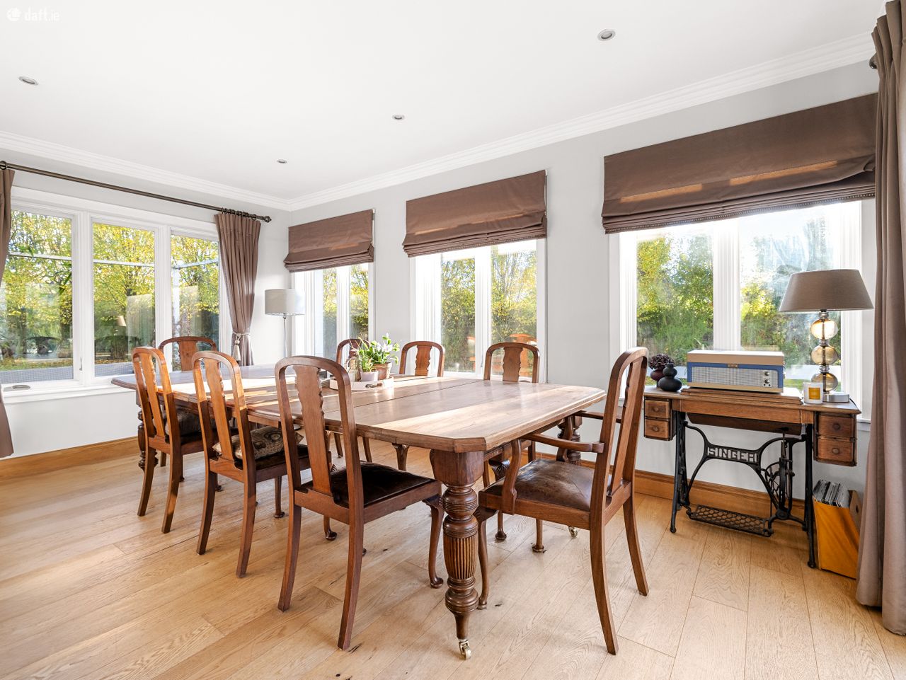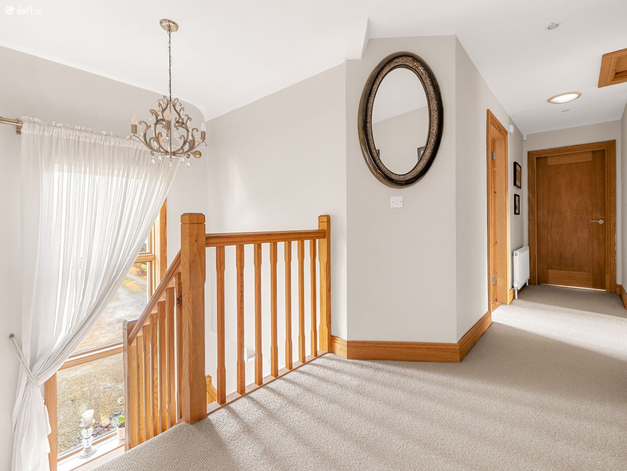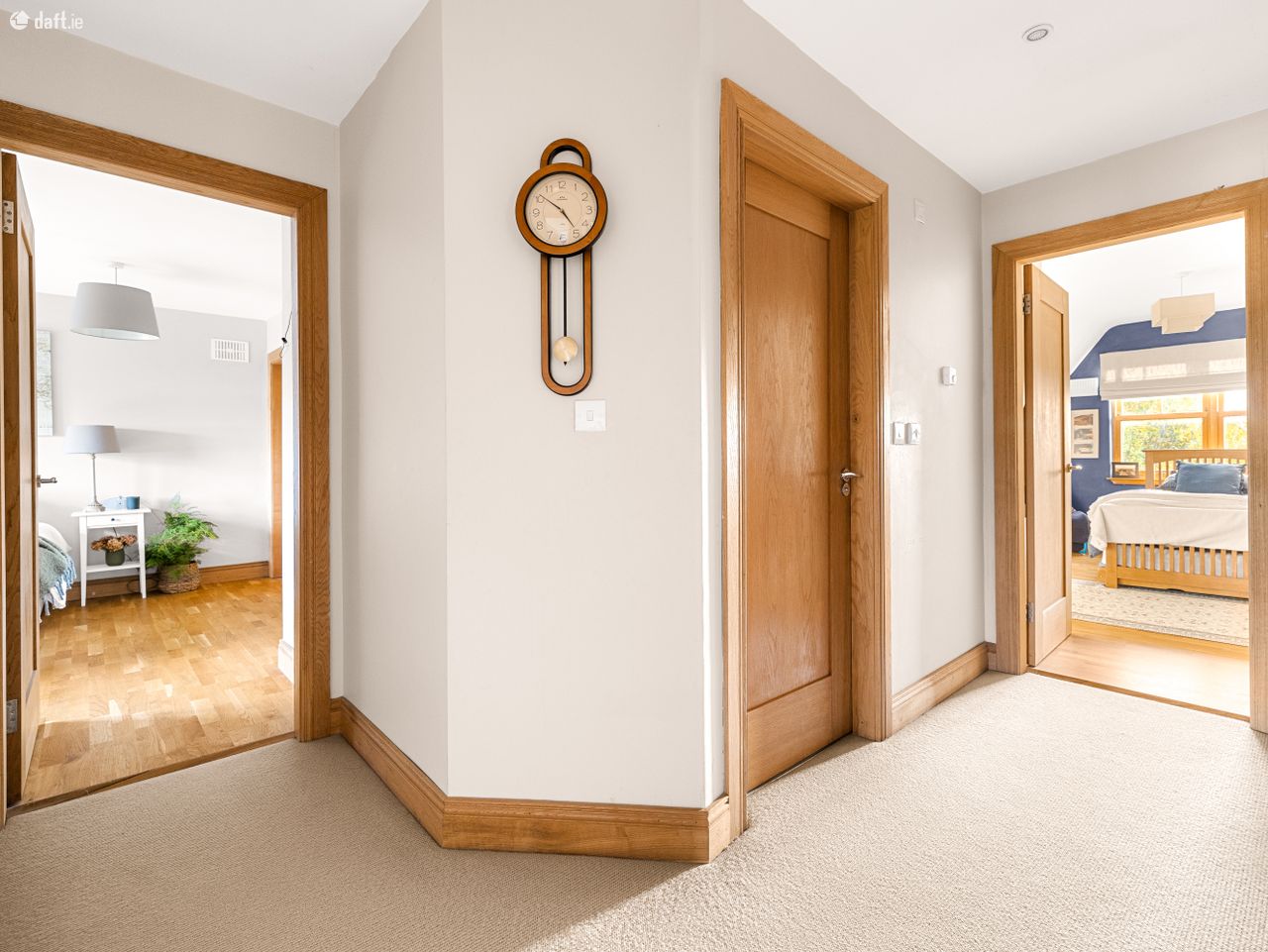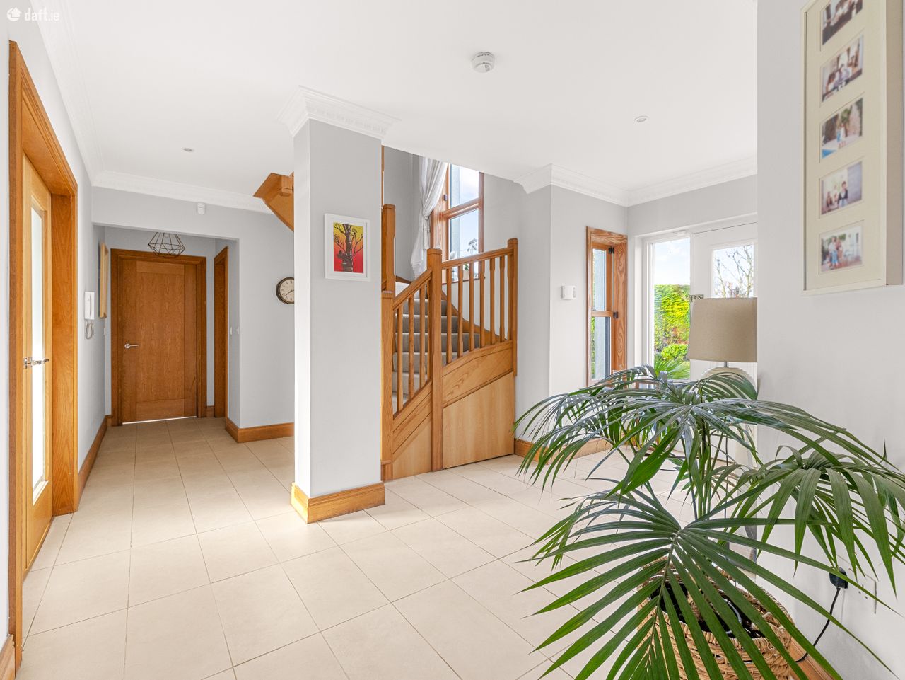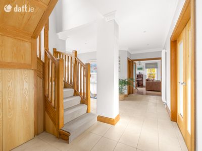Accessed through gates, a large driveway provides ample parking for multiple cars and is framed by mature hedging and trees that enhance the sense of privacy. On entering the home, you are welcomed by a bright and spacious hallway that immediately sets the tone for the quality and space throughout.