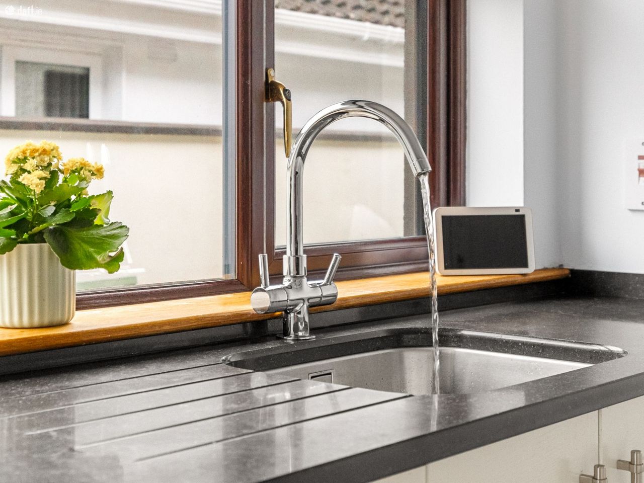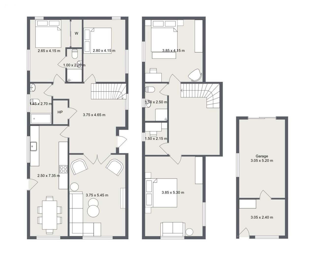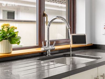 Downstairs also includes two bright and airy bedrooms, both with wooden flooring, one of which features a neatly tiled en-suite. A main bathroom completes the ground-floor accommodation.