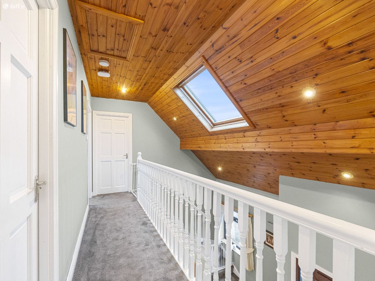 Upstairs, the carpeted stairs and landing create a warm, comfortable feel leading to two further carpeted bedrooms, a study, and a fresh, modern family bathroom.