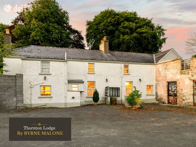Request DetailsAt Byrne Malone, we are delighted to present Thornton Lodge to the market, an exceptional detached country residence exuding warmth, style, and timeless appeal. Enjoying a truly enviable setting with panoramic views over the magnificent Curragh Plains, this is a rare opportunity to own a home that seamlessly combines countryside charm with modern family living. Having been lovingly restored by the current owners over the last 27 years, and is now offered for sale by private treaty.