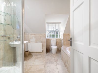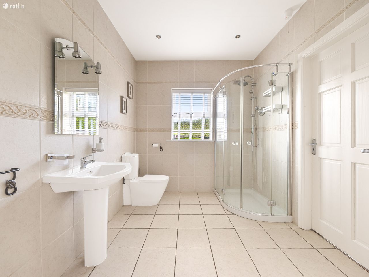 The principal bedroom is a superb private retreat, complete with walk-in wardrobe and beautifully tiled ensuite bathroom. A second bedroom also benefits from its own ensuite, while a large family bathroom services two further spacious bedrooms. Elevated outlooks and natural light enhance the sense of calm and space throughout.