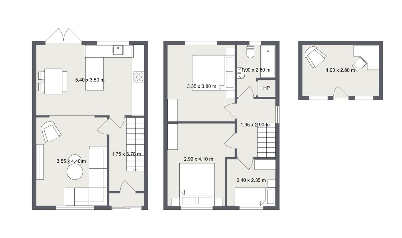 Garden room/Office: DG French doors to front aspect, DG windows to front aspect, laminate flooring, pitched roof and power, light and internet.